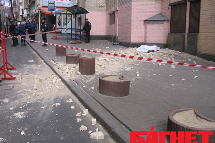 Как сообщили «Багнету» в пресс-службе ГУ МЧС в Киеве, обрушение фрагмента кирпичной стены недействующего балкона произошло утром в 10:00. Кирпичи упали с восьмого этажа 9-этажного здания отеля. Здание было построено еще в 1983 году. Балкон упал на пешеходную зону, где в это время на остановке ожидал троллейбуса погибший. Площадь обрушения составила два квадратных метра.