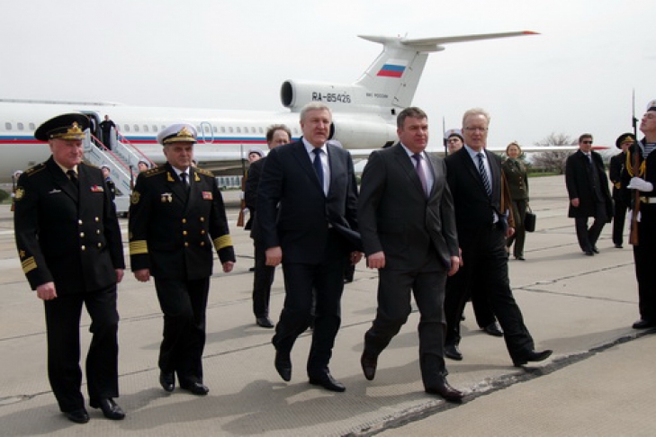 Вчера, в понедельник, два министра обороны – Украины и Российской Федерации работали в Крыму. Вчера утром российский Ту-154, на борту которого находились Михаил Ежель и Анатолий Сердюков со своей делегацией, сел на военном аэродроме Бельбек. Оттуда тремя вертолетами две делегации и министры в сопровождении командующего Военно-Морскими Силами Украины адмирала Виктора Максимова и командующего Черноморским флотом РФ вице-адмирала Владимира Королева отправились в авиационный гарнизон Новофедоровка, что расположен неподалеку от города Саки.