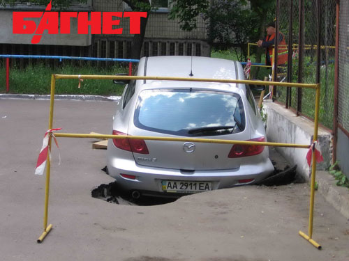 В Киеве Мазда провалилась под асфальт (ФОТО)