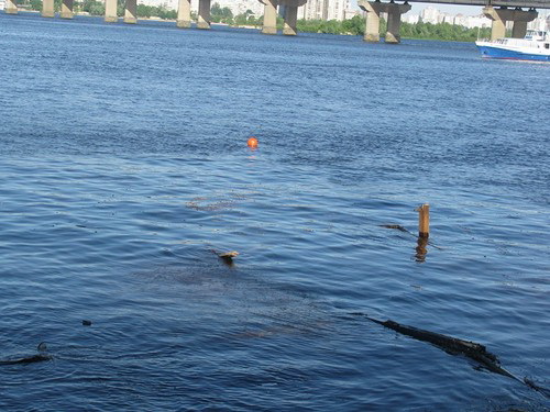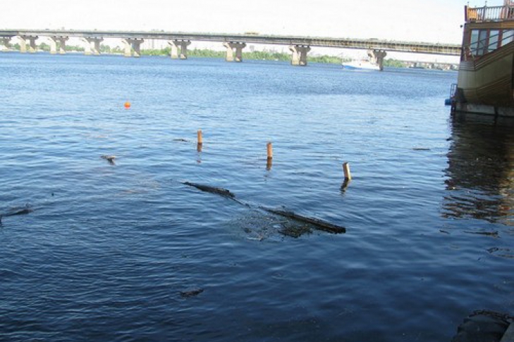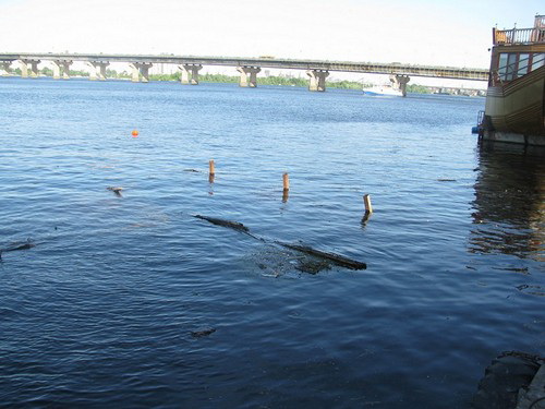 В Киеве затонувший дебаркадер оставили гнить на дне Днепра