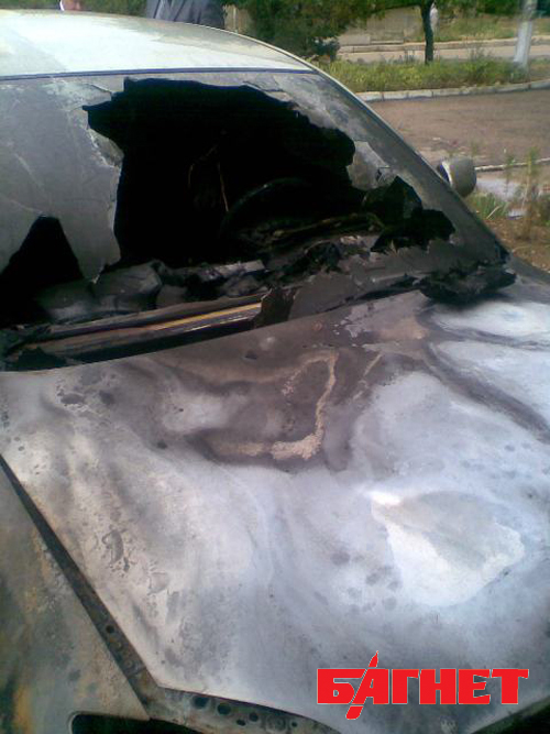 – Я проснулся от крика жены, что во дворе дома горит наша машина. Выглянув в окно, увидел, что горят колёса автомобиля, а на багажнике лежит горящая бутылка и сразу позвонил в МЧС, – рассказал хозяин машины.