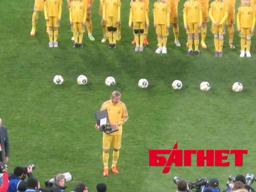 Перед матчем организаторы раздали награды Олегу Блохину, Анатолию Тимощуку и Андрею Шевченко за проведение более ста матчей за национальную сборную. (Блохина удостоили награды за матчи в составе сборной СССР. – Авт.).