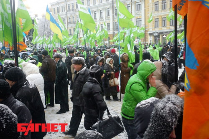 Собирались на митинг оппозиционеры организованно возле Золотых ворот, и под руководством своих «старших» отправлялись группками на Софиевскую площадь, где уже к часу дня их собралось несколько тысяч.