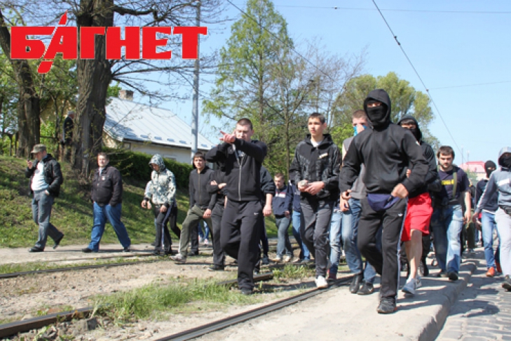 В это время мужчину окружало около 200 человек. Кто-то из толпы крикнул: «Бей провокатора!», и мужчину начали избивать. После этого милиция вырвала у него красный флаг и задержала. Сотрудники милиции доставили его в Галицкий районный отдел милиции.