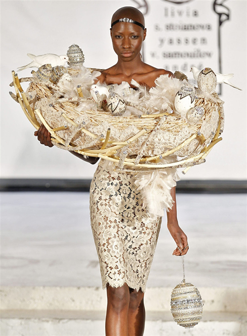 Модель в наряде от «On Aura Tout Vu» на показе коллекции весна-лето 2011