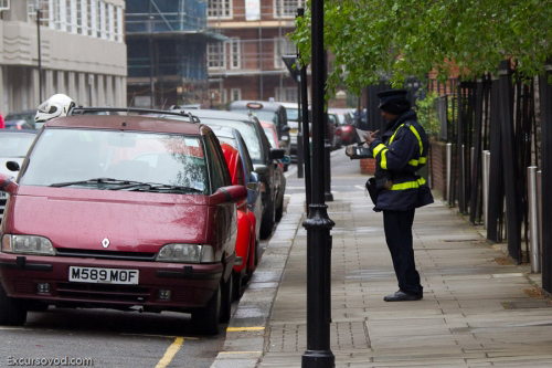 Полицейский в Лондоне выписывает штраф за парковку.