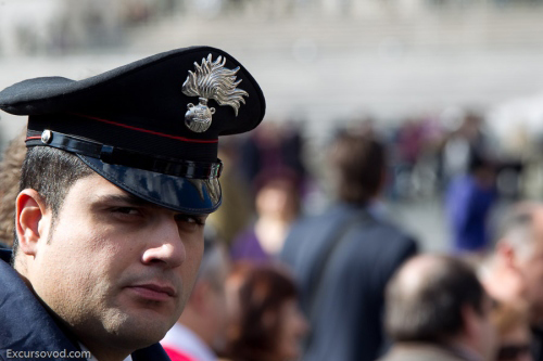 Полицейский в Ватикане во время выступления Папы Римского.