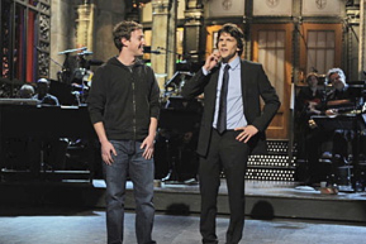 Основатель и исполнительный директор Facebook Марк Цукерберг встретился со своим двойником, американским актером Джесси Айзенбергом, который сыграл его в фильме «Социальная сеть» (The Social Network). Увидеть «самого себя» на съемках программы Saturday Night Live стало для молодого миллиардера настоящим сюрпризом.