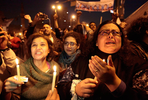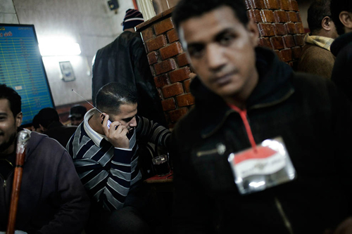 Демонстранты ждут обращения президента к народу в кофейне рядом с площадью Тахрир. (Marco Longari/AFP/Getty Images)