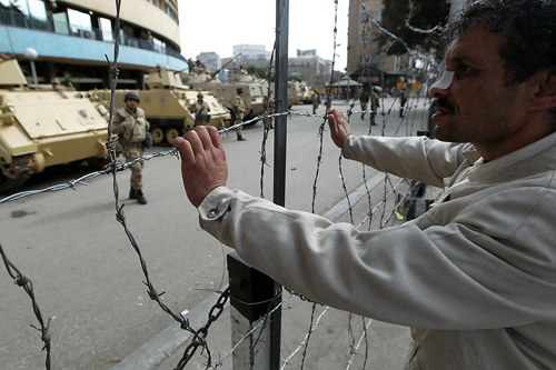 Солдат поправляет колючую проволоку вокруг президентского дворца в Каире. (Amr Abdallah Dalsh/Reuters)