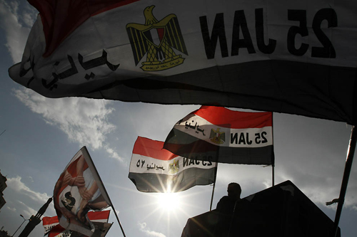 Снимок сделан рядом с флагом на месте, где демонстрант был убит во время конфликта между митингующими и полицией на площади Тахрир. (Pedro