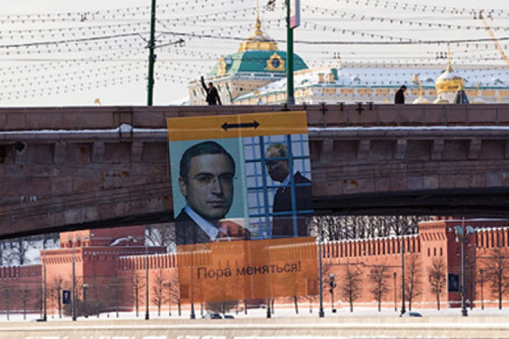 Вчера, 20 февраля, активисты движения «Мы» при поддержке движения «Смена» повесили на Большом Москворецком мосту у Кремля плакат с фотографиями Ходорковского и Путина с надписью «Пора меняться».
