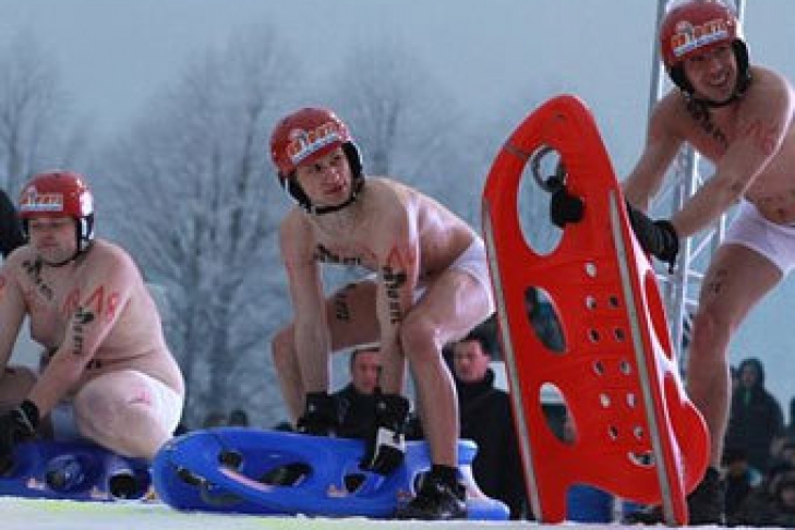 В Германии прошел необычный чемпионат по катанию на санках - его участники должны были выступать в форме, состоявшей из трусов, зимней обуви, перчаток и защитных шлемов. В мероприятии приняли участие 13 мужчин и такое же количество женщин.