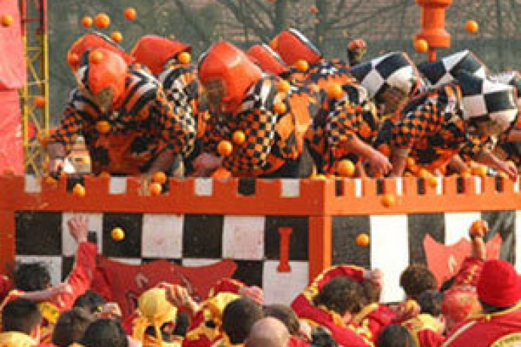 Из года в год с юга Апеннин в Ивреу привозят тонны апельсинов, чтобы жители городка и туристы, специально приезжающие сюда в дни карнавала, смогли вволю забросать друг друга сочными цитрусовыми, следуя древней традиции, которая берет свое начало в XII веке.