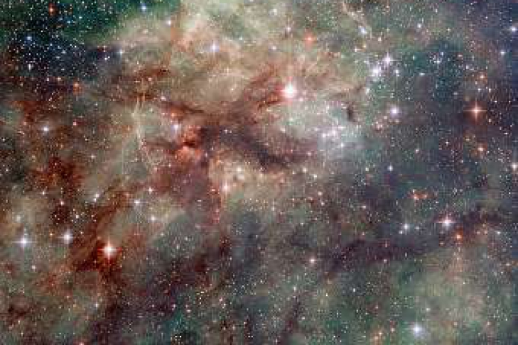 Кроме погибших звезд в туманности Тарантула много молодых светил. Мощность их излучения настолько велика, что NGC 2070, удаленную от Земли на расстояние 170 тысяч световых лет, можно увидеть на небе невооруженным взглядом. Большая часть излучения исходит от скопления звезд RMC 136. Туманность Тарантула - это одна из самых ярких эмиссионных туманностей, расположенных относительно неподалеку от Солнечной системы.