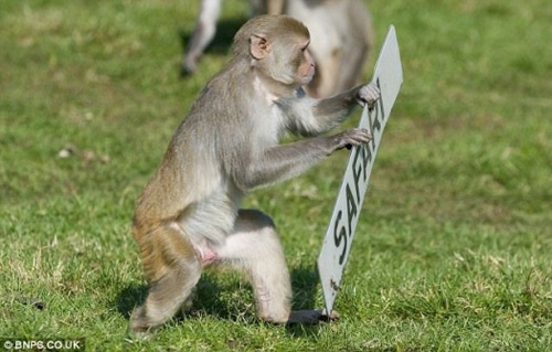 Работники парка настоятельно рекомендуют надолго не останавливаться на территории обезьян, наглядно демонстрируя последствия такой ошибки.