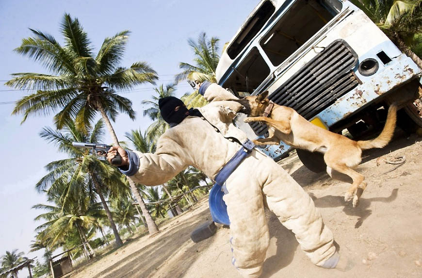 Едва завидев вооруженного террориста, четырехлапый защитник по кличке Демон выпрыгивает из окна автобуса и цепляется острыми зубами в руку преступника, нейтрализуя его. Познакомьтесь с собаками-коммандос, которых обучают справляться с преступниками в самых опасных ситуациях. Особо сосредоточенные животные из тренировочного центра «Wolfgrey K9», который базируется недалеко от индийского города Бангалора – настоящие наемники. Они очень популярны среди команд спецназа, спецслужб и вооруженных сил со всего мира. Собаки породы немецкая овчарка, голландская и бельгийская овчарки тщательно отбираются, и с ними работают опытные кинологи. Повиновение – основа дрессировки и общения с собакой. Программа тренировки длится 18 месяцев.