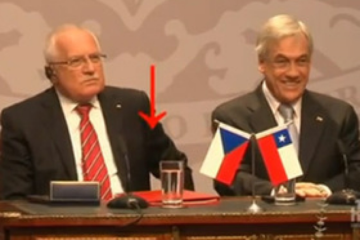 На записи, показанной в эфире чешского телевидения, видно, как Клаус с невозмутимым видом присваивает себе протокольную ручку в то время, как его чилийский коллега выступает с речью перед журналистами.