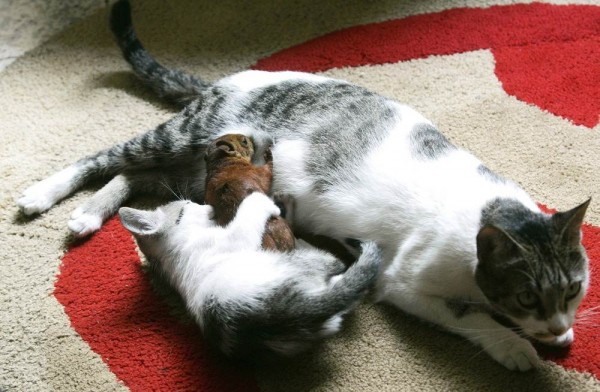 Кошка выкармливает бельчонка, а тигрица – трех поросят (ФОТО)