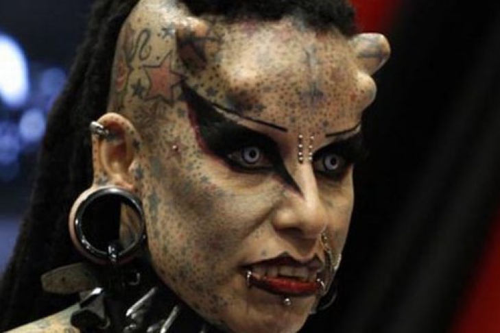 Кроме рог, лицо женщины «украшают» всевозможные татуировки