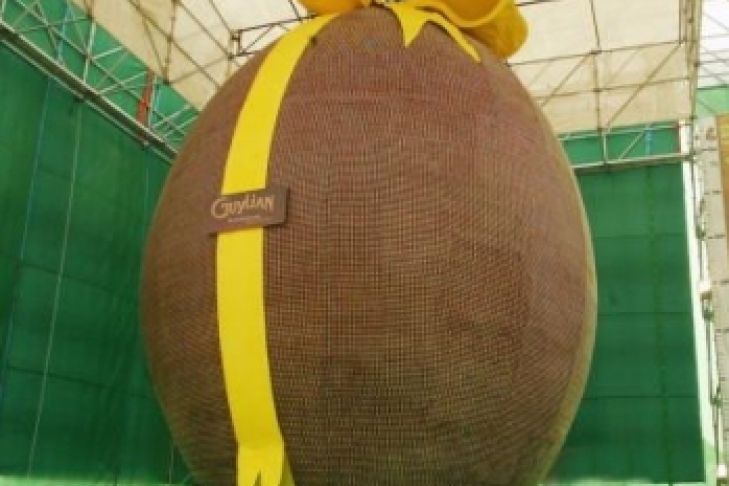 Бразильские кондитеры из Сан-Паулу изготовили из шоколада пасхальное яйцо весом 165 килограммов и высотой 1,2 метра
