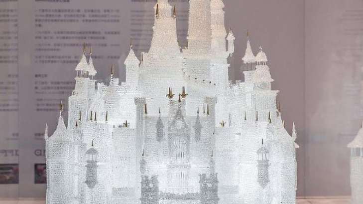 Уникальную вещь изготовил испанский стеклодув Мигель Аррибас, затратив на работу более 500 часов. Он скопировал замок из диснеевского мультфильма "Золушка", который построен в главном парке развлечений Walt Disney. В 2016 году стеклянный замок с покрытыми золотом шпилями был подарен музею - на пятую годовщину его основания.