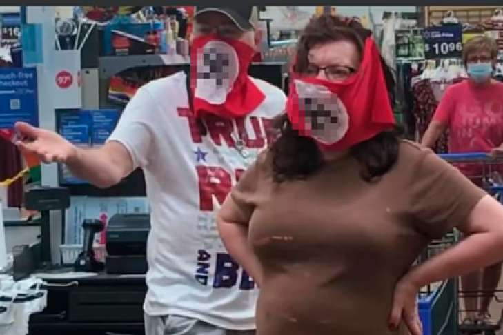 Канал опубликовал ролик, снятый очевидцем: мужчина и женщина набирают продукты, пока тот, кто снимает их на видео, говорит: "Вы не можете быть американцами и носить это. У нас была война по этому поводу!"