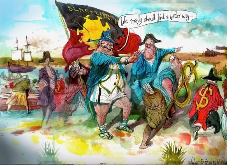 Бывший киевлянин, а ныне со-директор Executive Council of Australian Jewry Алекс Рывчин обратился в Twitter к карикатуристу Дэвиду Роу: «Это ведь казначей изображен с головным убором, крючковатым носом и знаком доллара? Другого способа не было?» «Это Джош, и на нем морская кепка, как на (классической) картине Фокса, изображающей высадку капитана Кука, — ответил Роу. — И гарпун в виде доллара, поскольку он казначей. Что касается носа, это всего лишь набросок. Прошу прощения, я не имел в виду ничего больше».