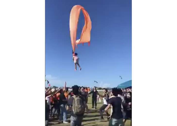 Трехлетняя девочка запуталась в веревках, в результате чего змей порывом ветра поднял ее высоко в небо.
