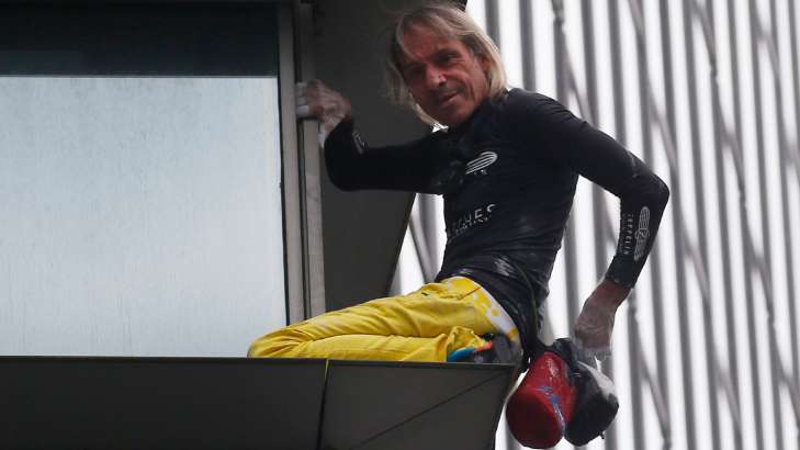 Французский скалолаз Ален Робер по прозвищу Человек-паук залез на высотное здание во Франкфурте-на-Майне.