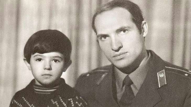 Здесь же появилась фотография Лукашенко без усов. Молодой президент изображен в военной форме с маленьким мальчиком рядом.