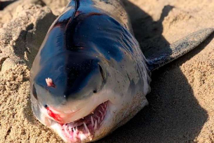 Рыбаки нашли мертвую акулу с шипом ската-хвостокола между глаз