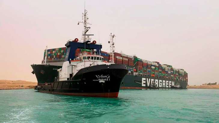 23 марта контейнеровоз Ever Given сел на мель в южной части Суэцкого канала, из-за чего движение судов в обе стороны было полностью заблокировано. В ночь на 28 марта была предпринята попытка снять судно с мели во время прилива, однако она провалилась. Пробка из грузовых кораблей, которые ждут в очереди, чтобы войти в канал, видна в 65 км от южного входа.