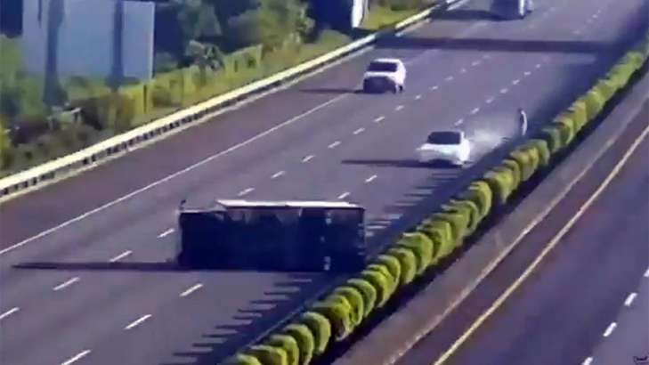Изначально на автостраде перевернулся полуприцеп, и проезжающий мимо автомобилист остановился, чтобы помочь водителю грузовика выйти из транспортного средства. Во время помощи в прицеп врезался электромобиль Tesla.