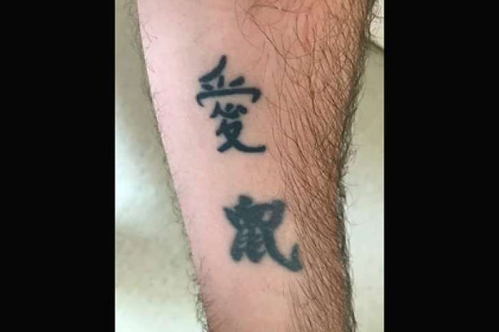 Несколько лет спустя Эймс нанес на руку новый иероглиф, расположив его над предыдущим. Рисунок, который переводится как «любовь», герой материала посвятил своим отношениям с женой Микаелой (Michaela).