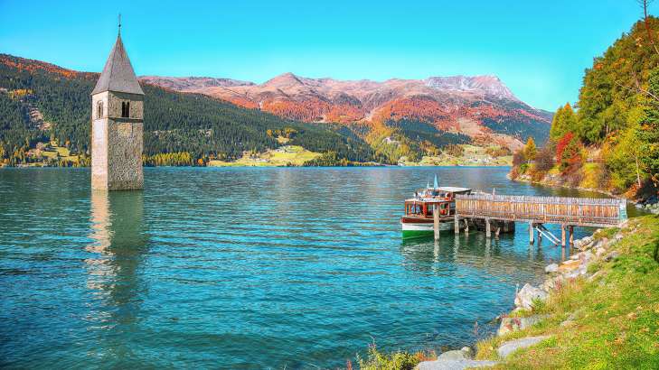 Итальянская деревня Курон в Южном Тироле, затопленная несколько десятков лет назад, появилась из-под воды озера Лаго-ди-Резия. Жители увидели ее благодаря ремонтным работам на местном водохранилище. Об этом сообщает "Би-би-си".