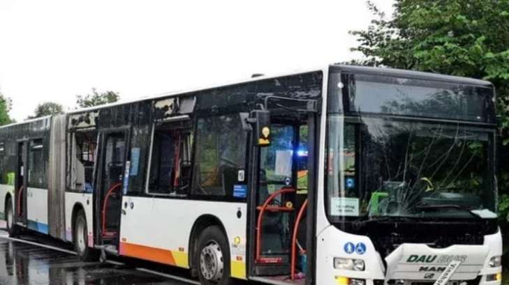 Многотонный грузовик протаранил автобус с пассажирами (видео)