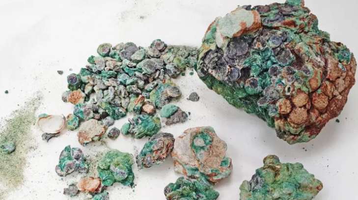 Куча монет общим весом шесть килограмм аглютинировалась после многих лет пребывания под водой, образовав глыбу соединенных монет. Было определено, что они использовались в четвертом веке нашей эры.