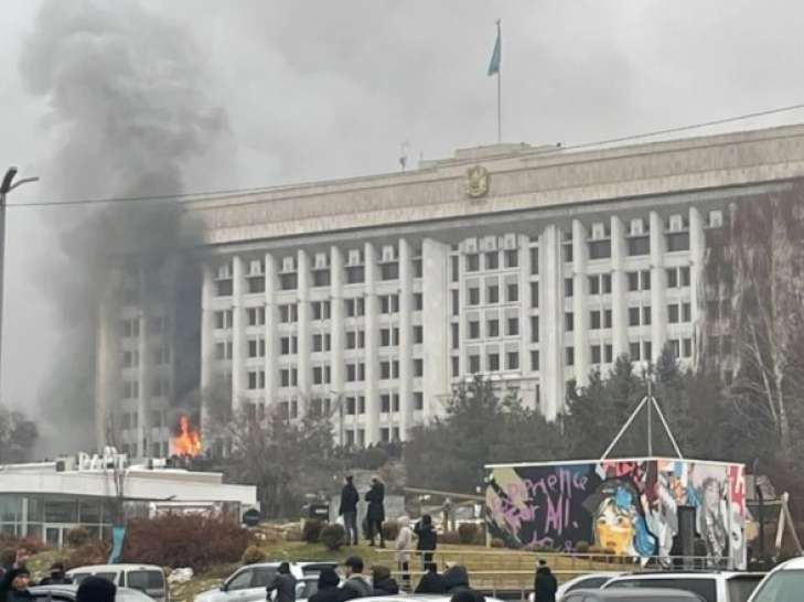 Протестующие захватили резиденцию президента Казахстана Касым-Жомарта Токаева, сейчас здание горит.