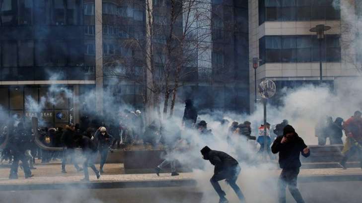 Несколько сотен манифестантов, отделившихся от основной колонны, попытались прорвать полицейское оцепление около здания полиции, начали бросать в полицейских петарды и бутылки. Полиция отогнала группу протестующих, применив водометы и слезоточивый газ. Вчера, 23 января, в Брюсселе температура воздуха составляла +4 градуса, по местным законам использование водометов допускается при температуре выше нуля.
