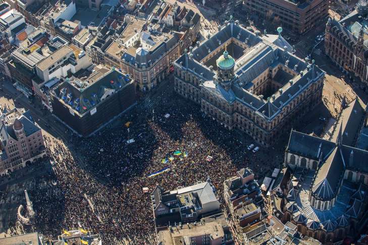 Thousands of people show solidarity with Ukraine in Netherlands, on February 27