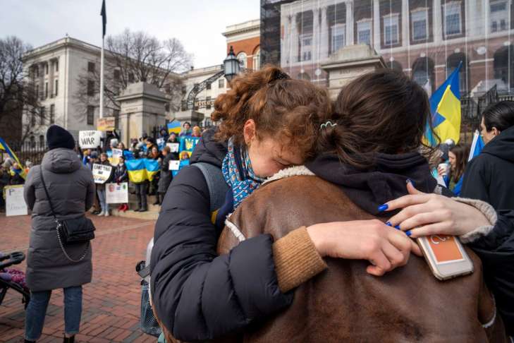 A vigil for Ukraine takes place in Montclair, New Jersey, on February 24