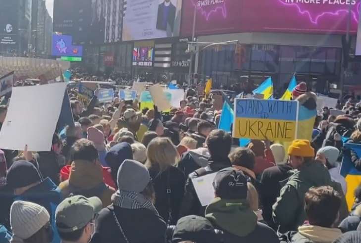 Абберазак Али присоединился к сотням сторонников на Таймс-сквер в знак солидарности с народом Украины в субботу, сообщил ny1.com.