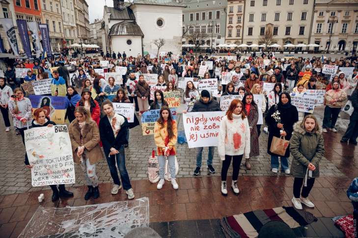 Акция "Кровавый геноцид" прошла в субботу, 9 апреля, на площади Рынок в польском Кракове.