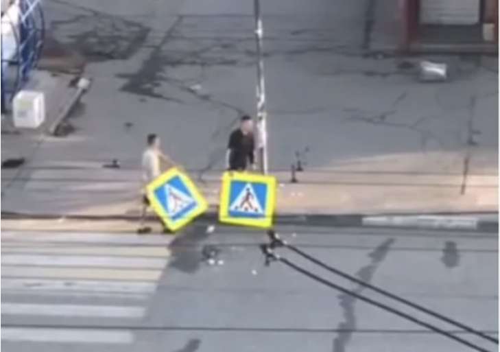 Два российских неадеквата "денацифицировали" дорожный знак "неправельных" цветов (видео)