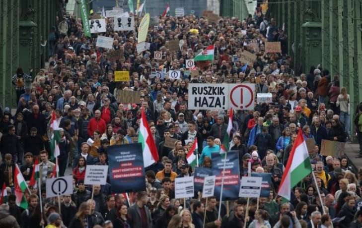 В центре Будапешта в воскресенье, 23 октября, состоялось многотысячное протестное шествие. В 66-ю годовщину Венгерской революции, тысячи венгров, среди которых учителя и ученики, требовали повышения заработной платы педагогам и борьбы с инфляцией, обесценивающей доходы населения. Об этом сообщает Reuters.