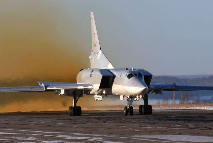 Поврежденный Ту-22М скрылся, оставив лишь тень на полигоне.