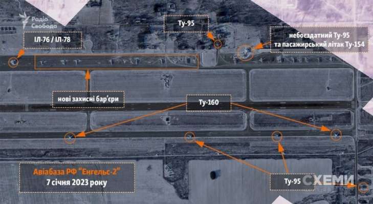 Журналисты программы "Схемы", проанализировав спутниковые снимки Planet Labs от 7 января, которые получили в свое распоряжение, выяснили, что по состоянию на субботу вражеские войска размещали на упомянутом объекте только шесть боевых самолетов, активно используемых для совершения массированных ракетных обстрелов Украины. Речь идет о четырех стратегических бомбардировщиках Ту-95 и двух – Ту-160.