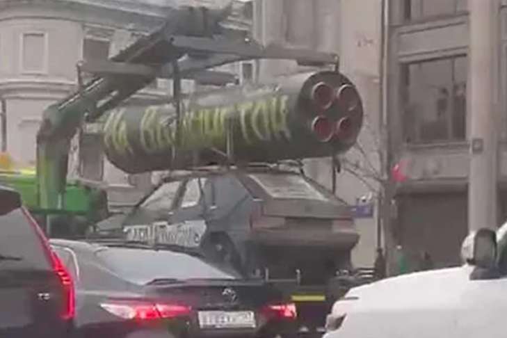 В центре москвы эвакуировали автомобиль с "ракетой" с надписью "На Вашингтон" на крыше