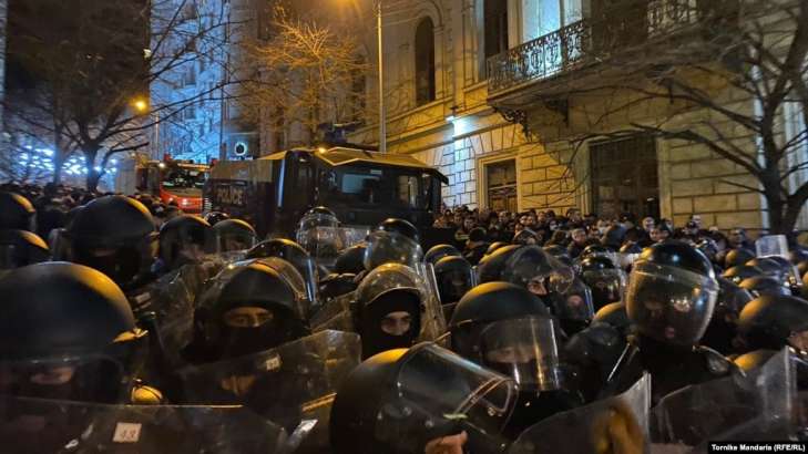 В столице Грузии под зданием парламента начались столкновения людей с полицией. Грузинские граждане пртестуют против закона об "иноагентах".